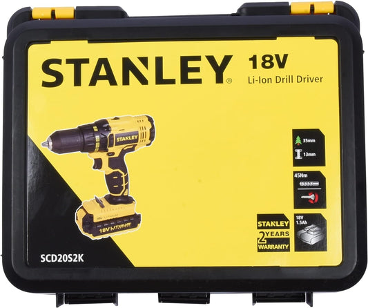 STANLEY SCD20S2K-B5 18V, 1.5 AH LI-ION DRILL DRIVER, 2 YEARS WARRANTY + WARRANTY CARD