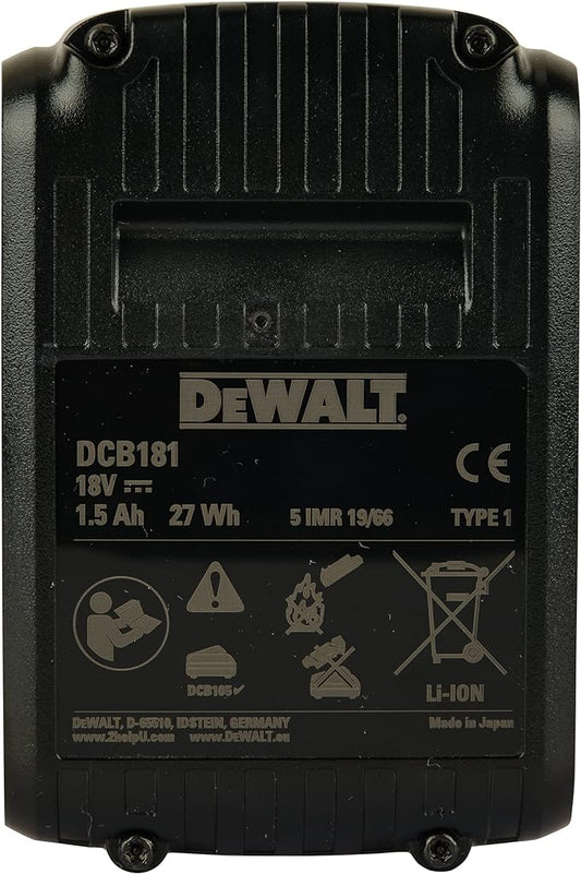 DeWalt DCB181-XJ 18V XR Lithium-Ion 1.5Ah Battery, Yellow/Black, 1.57 in*3.94 in*2.36 in