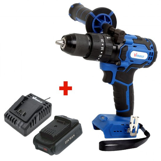 VTOOLS VT1203-20V Cordless Brushless Hammer Impact Drill With 2 Batteries and Charger 1 year warranty