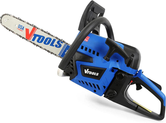 VTOOLS VT4201 16 Inch 45cc Gasoline Chainsaw, 550ml Fuel Tank, 2-Stroke Handheld with Air-Cooled, With Oregon Chain For Cutting Trees, Wood, And Logs, Blue,