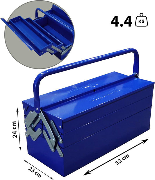 VTOOLS 5 Tray Metal Tool Box, 18.5-Inch Tool Organizer with Single Handle, Portable Storage Solution for Tools and Accessories, Blue, VT2272