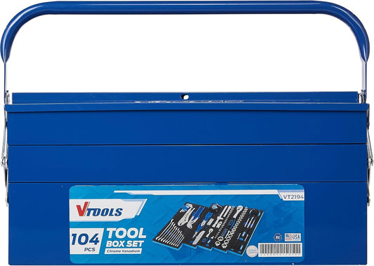 VTOOLS VT2194 Multi-Purpose 104 Pcs Tool Kit in Folding Tool Box, 3 Layer & 5 Tray Tool Organizer Box